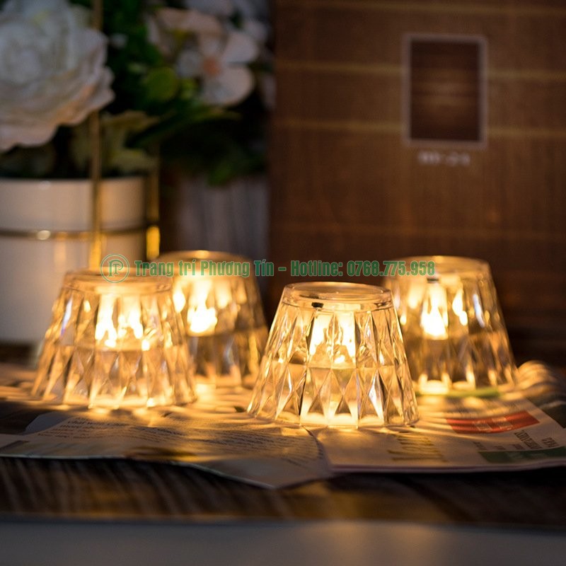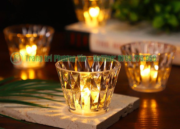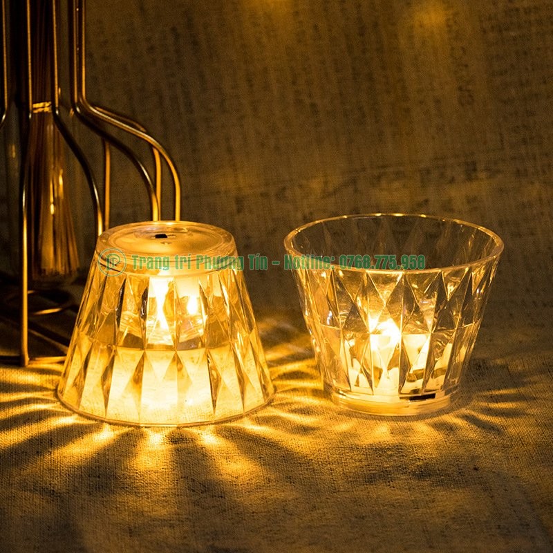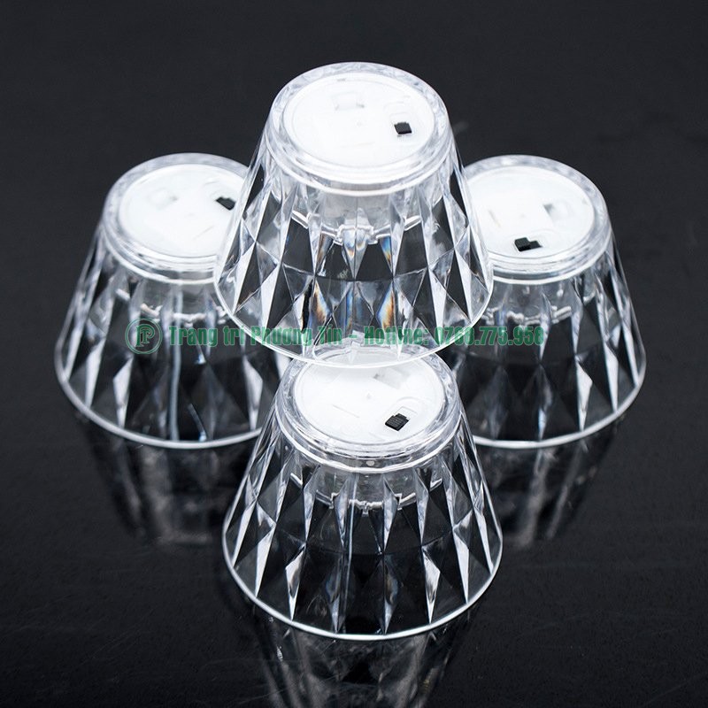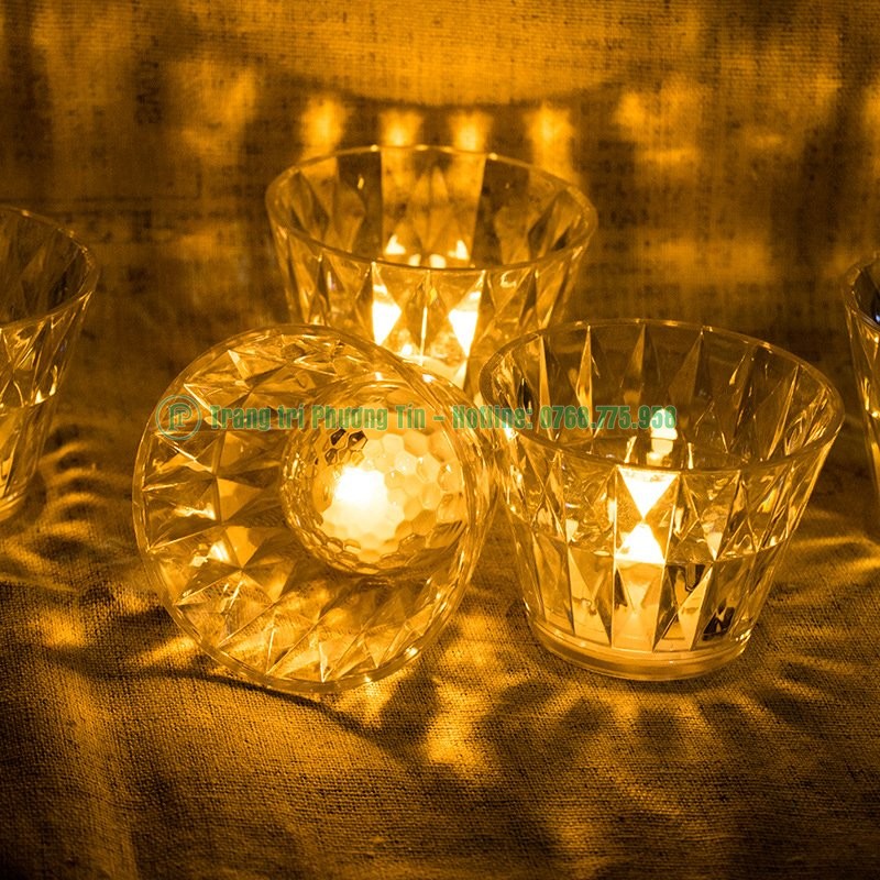 Cốc nến pha lê kim cương có chất liệu bằng nhựa mica trong suốt, được chế tạo như những giác cắt của kim cương tạo hiệu ứng ánh sáng bắt mắt xen lẫn huyền ảo.