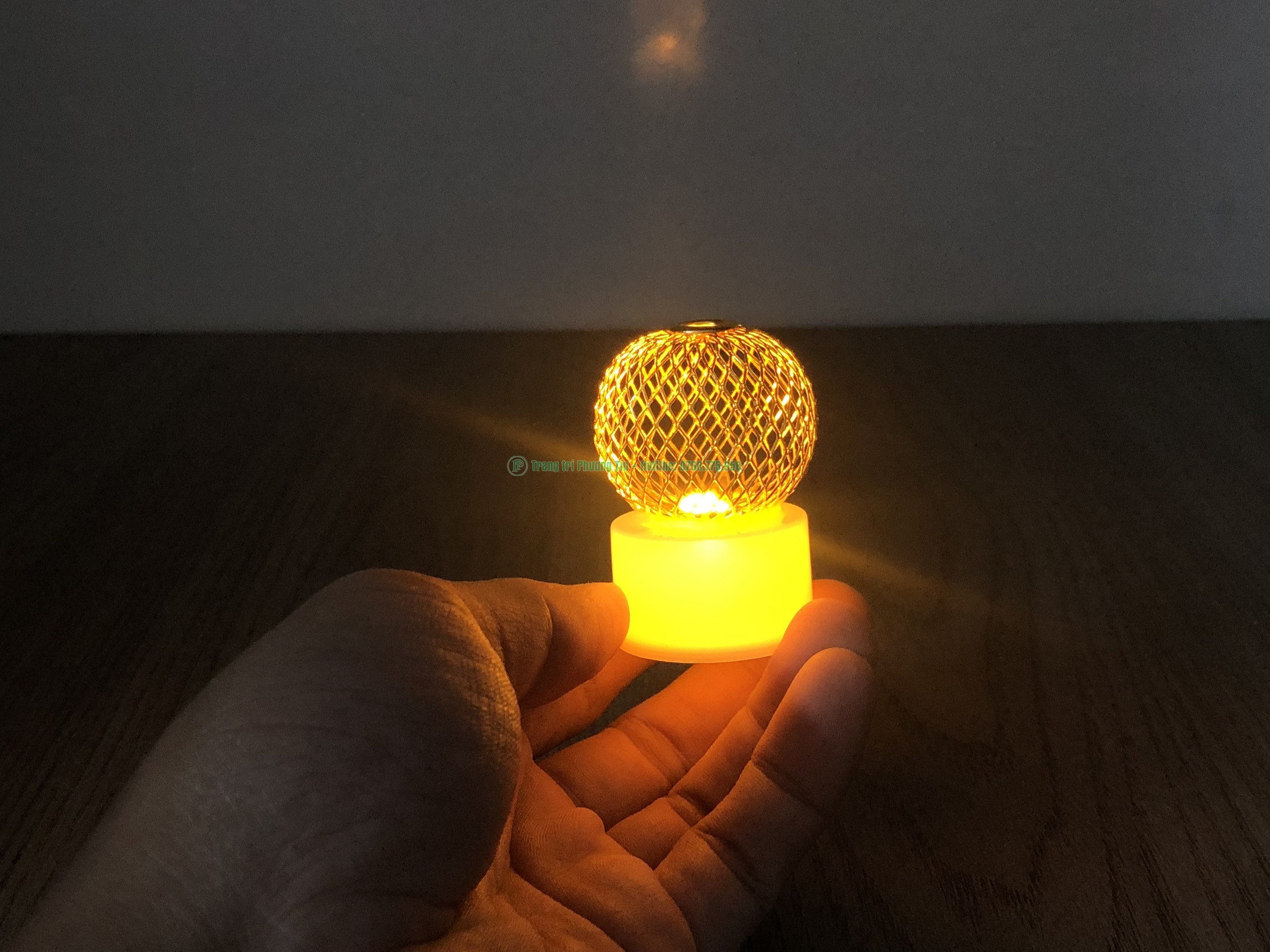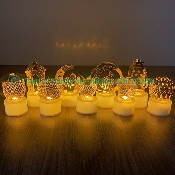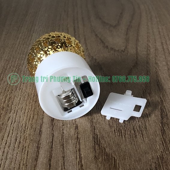 Đèn led cổ tích trang trí có nhiều mẫu đẹp mắt, từ hình dáng quả cầu lưới, đến trái khóm, mặt trăng, đèn dầu... Phần bên dưới là chiếc đèn led bằng nhựa trắng, phía trên là kim loại xi ánh vàng được đính keo cố định nhiều hình.