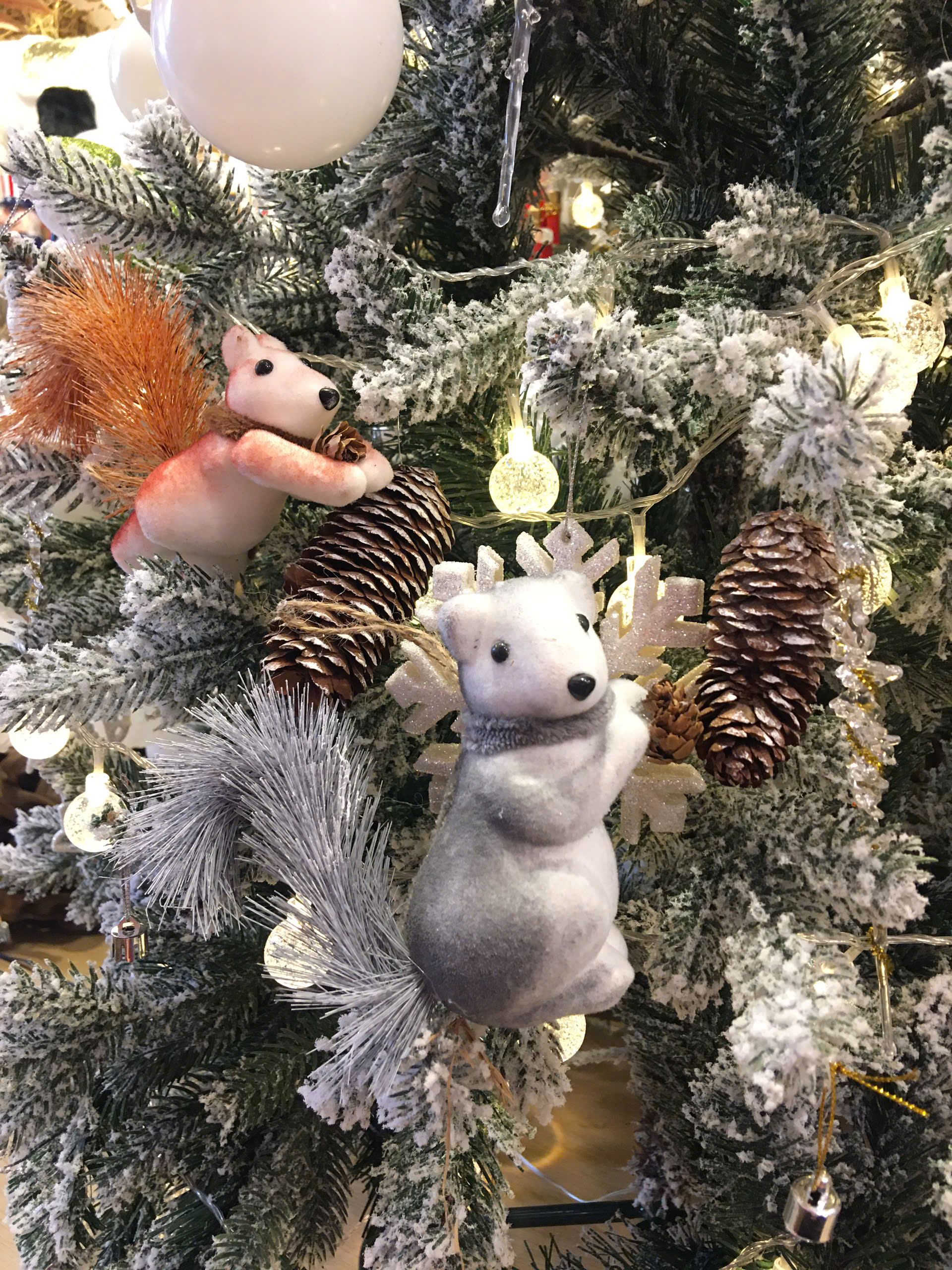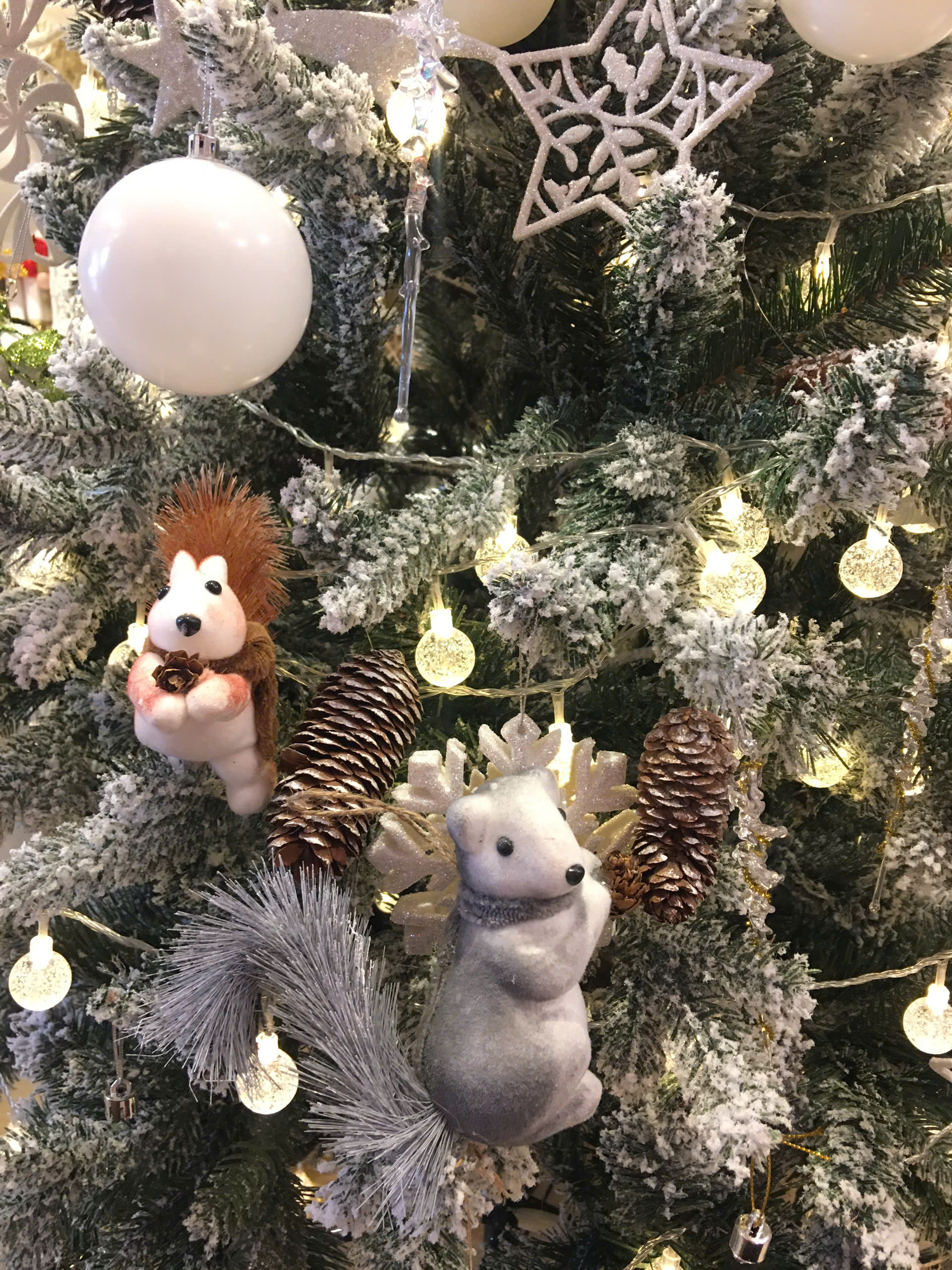 Gấu trắng trang trí cây thông