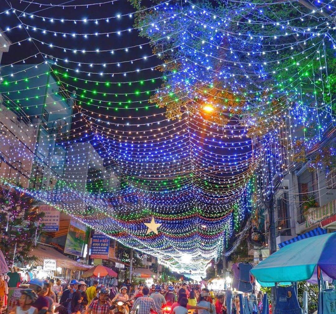 Khu phố ngày thường nay được trang trí, lên đèn Giáng sinh rực rỡ. Nhiều bạn trẻ đến chụp ảnh selfie. Và cảm khu phố trở nên sôi động, vui vẻ và rạng rỡ đón chào Giáng sinh.